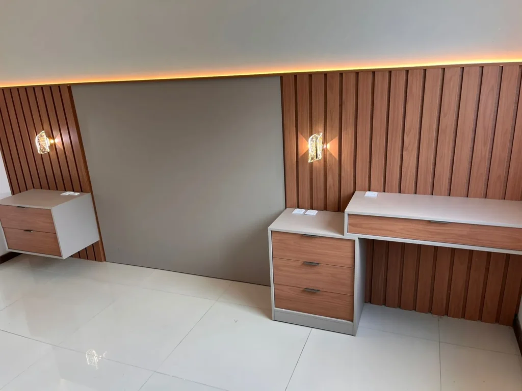 Os móveis são fabricados de acordo com as medidas específicas do ambiente do cliente, garantindo um encaixe perfeito e máximo aproveitamento de espaço.